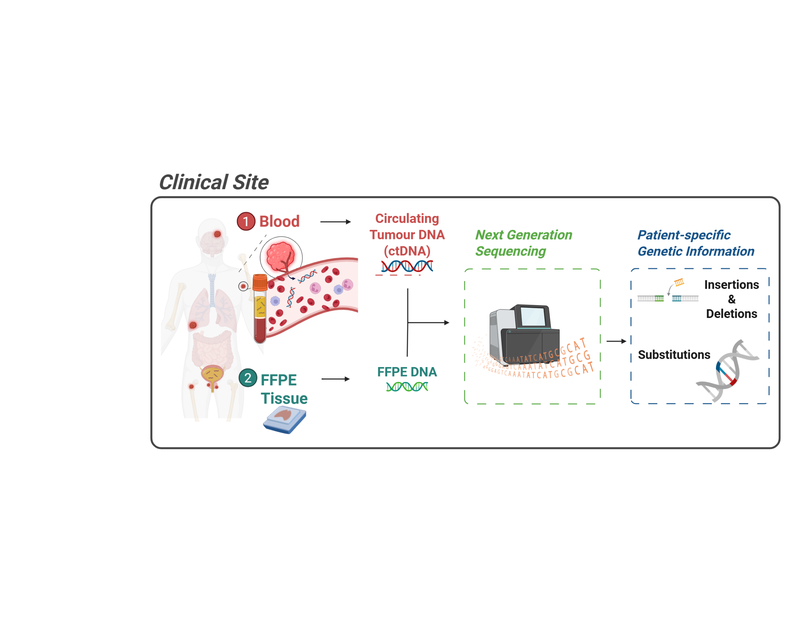 Monitoring of treatment efficiency and disease progression using patient-specific genetic biomarkers offers great potential to improve overall survival of cancer patients. Once patient-specific genetic biomarkers have been identified at the clinical site they can be monitored using blood samples or other biopsies.
